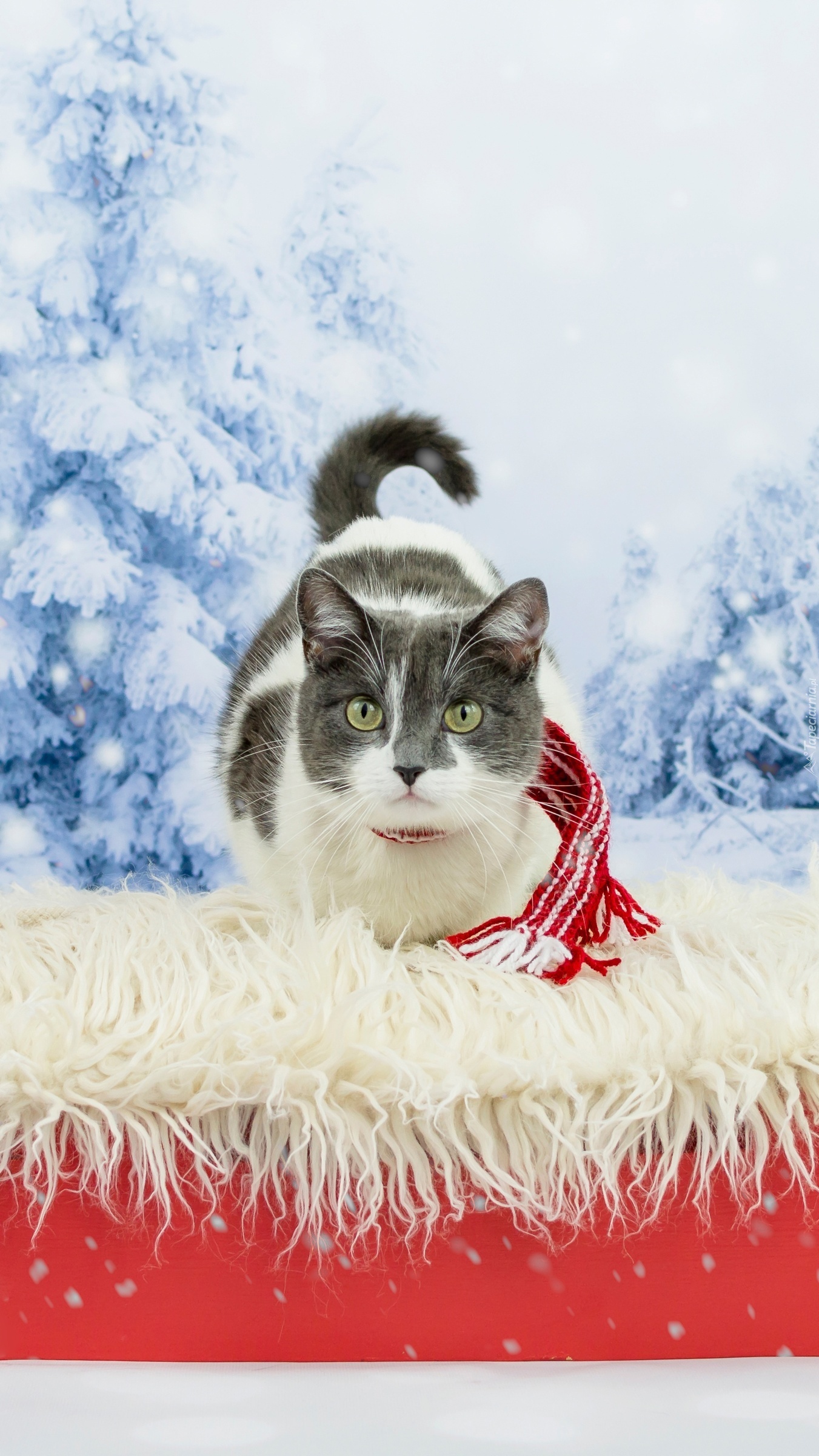 Edytor tapety: Kotek w szaliku na kocu