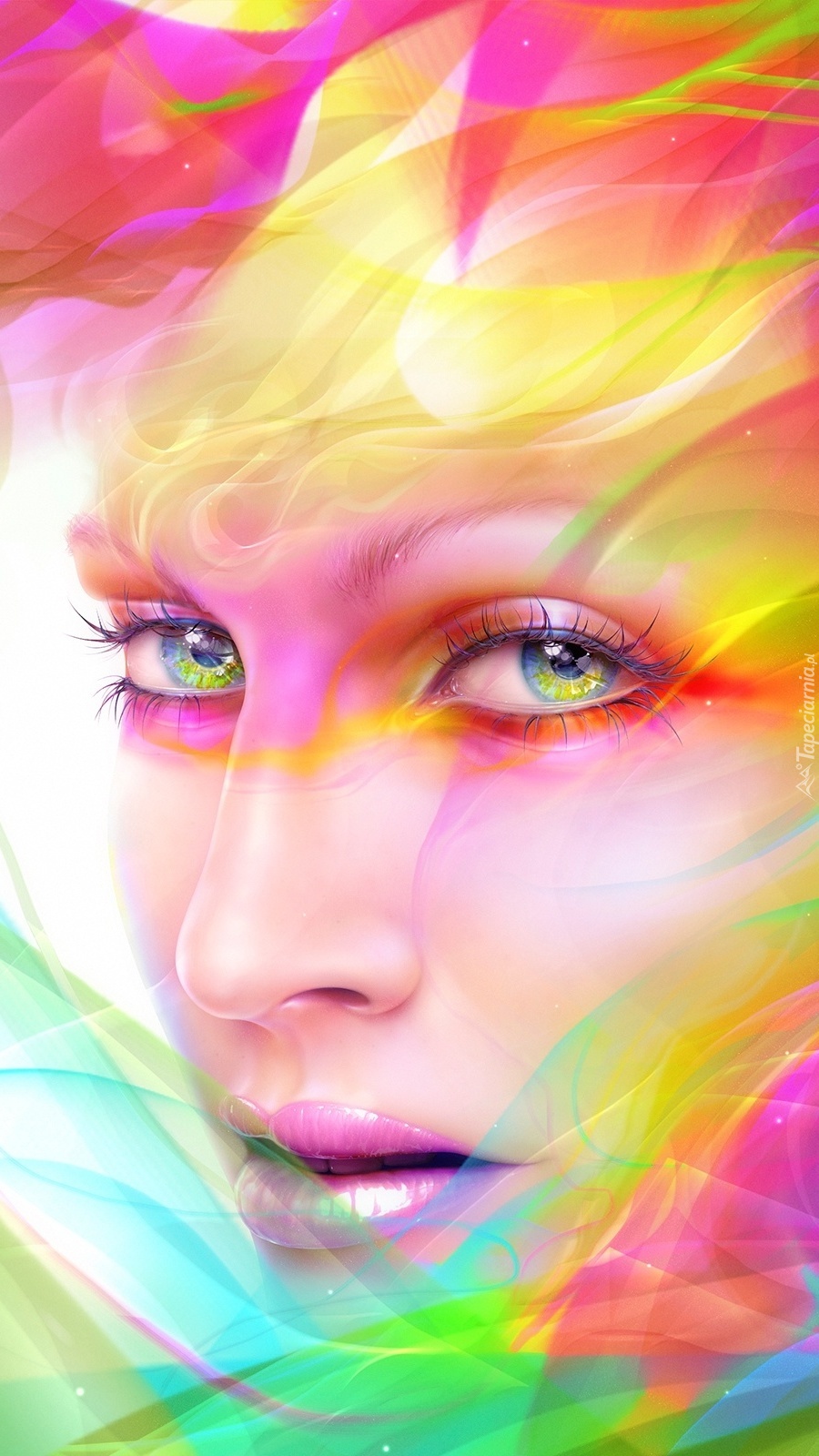 Edytor tapety: Kobieta w makijażu z tęczowymi smugami