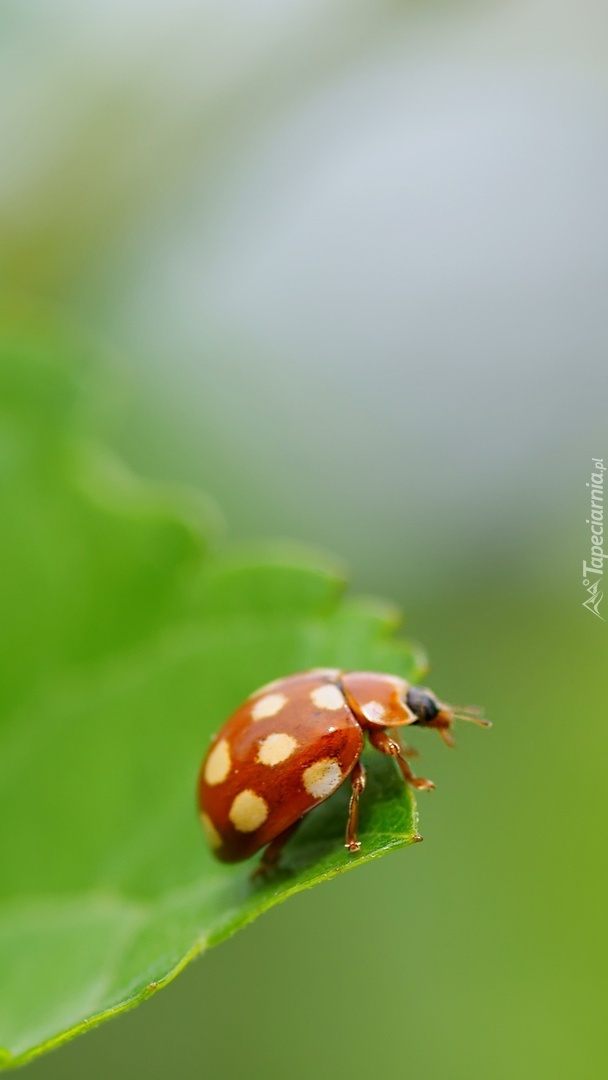 Edytor tapety: Biedronka w białe kropki na liściu