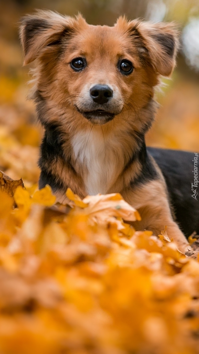 Edytor tapety: Piesek w liściach
