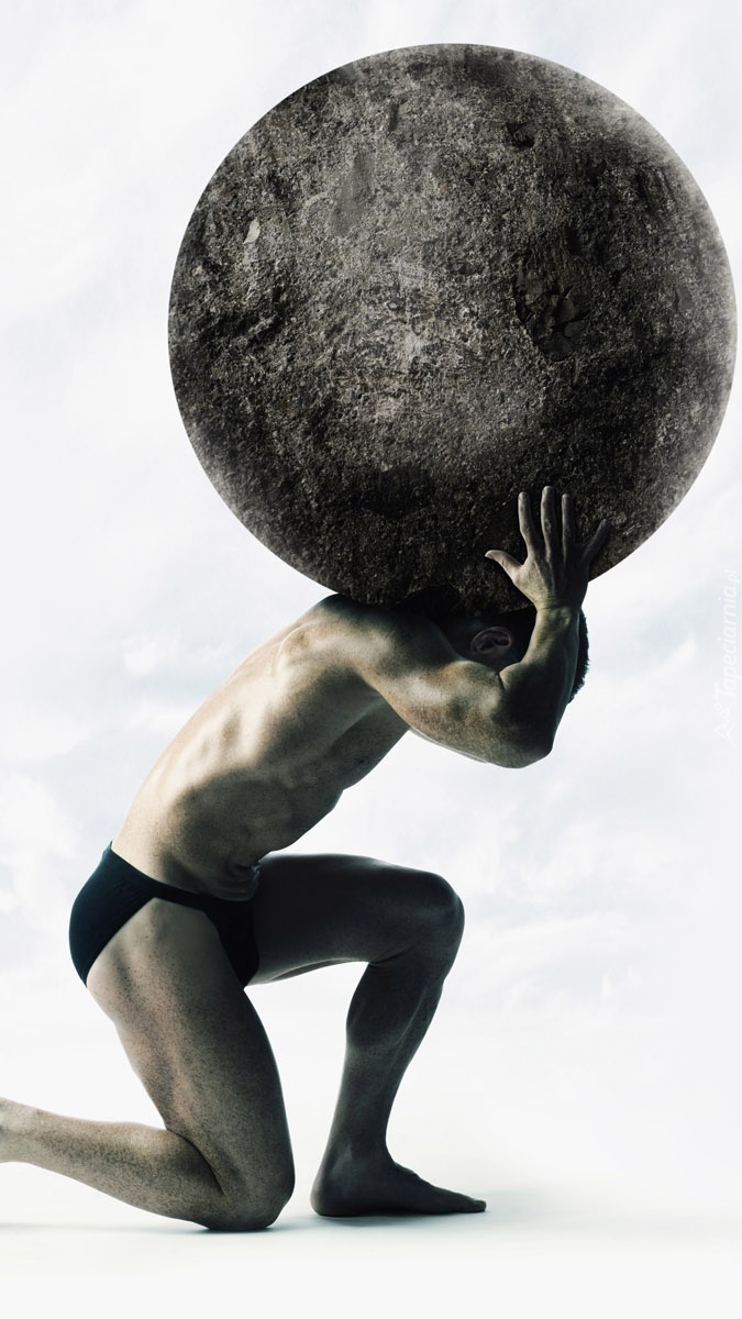 Edytor tapety: Silny mężczyzna z kulą na barkach