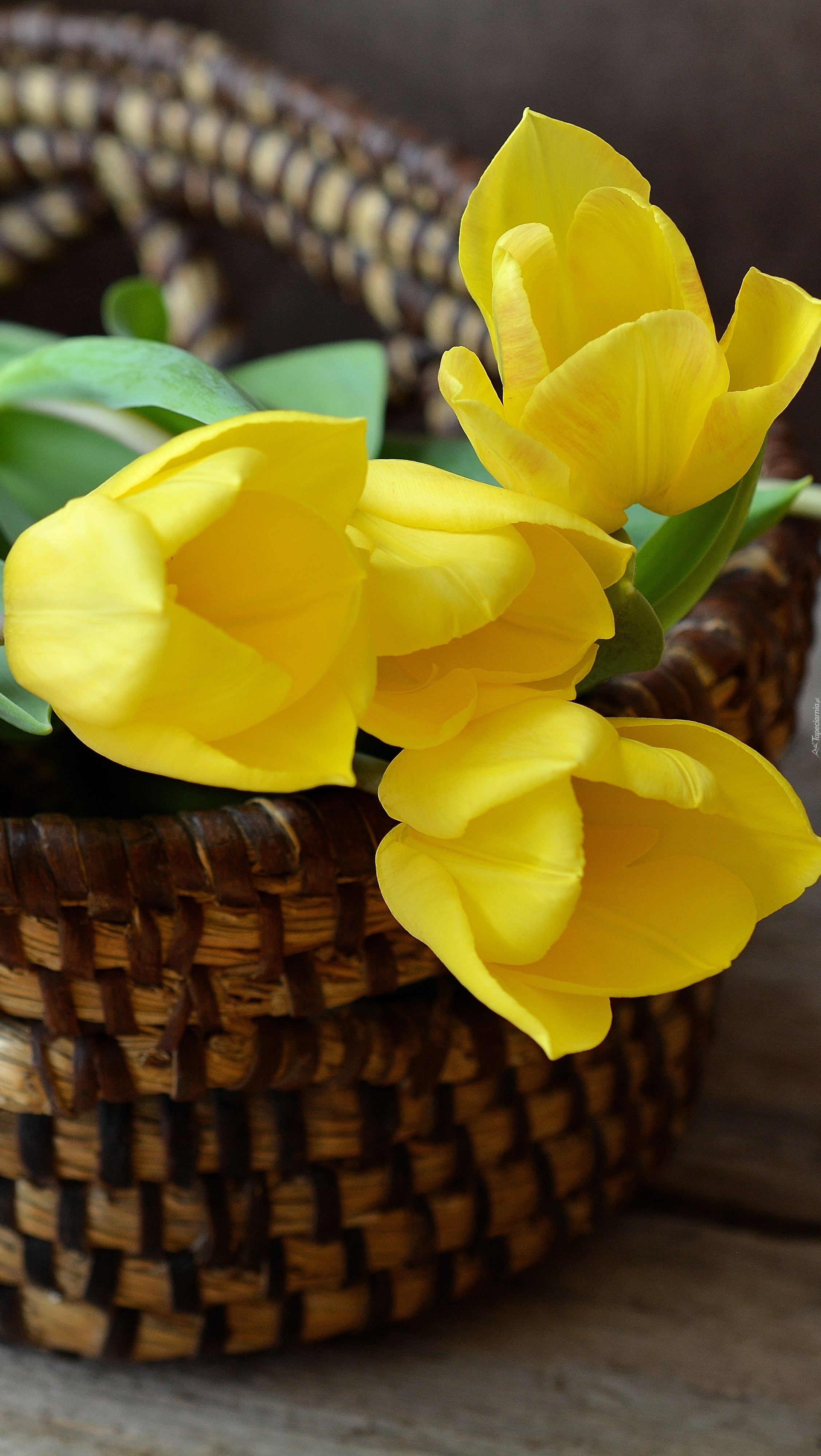 Edytor tapety: Żółte tulipany w koszyku