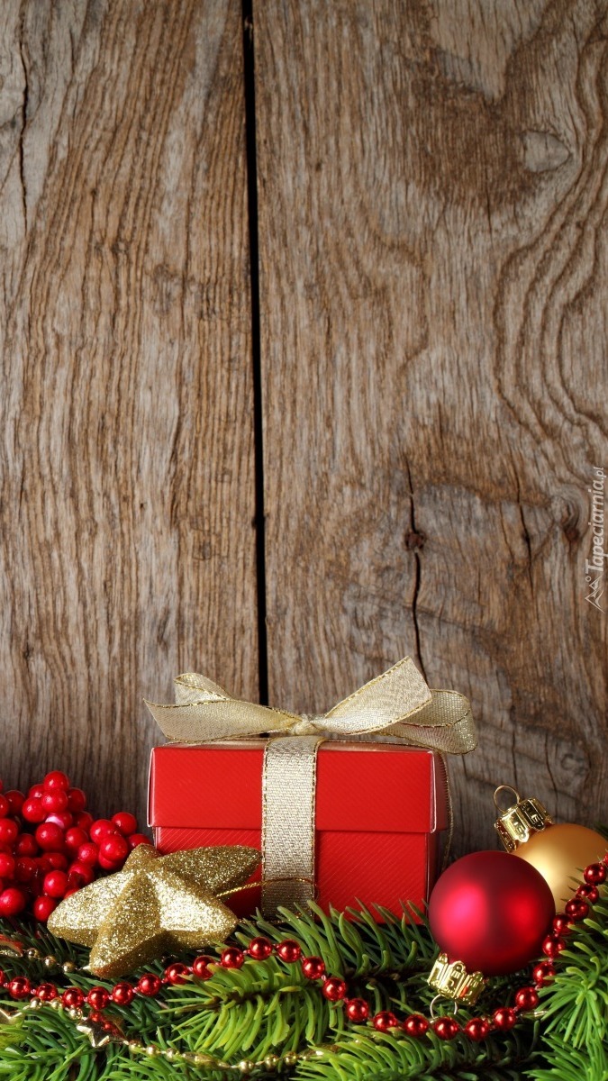 Edytor tapety: Prezent na ozdobionym świerku
