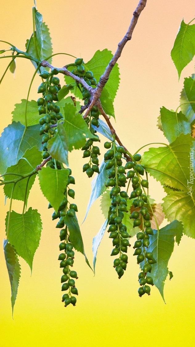 Edytor tapety: Zielone liście i owoce na gałązce