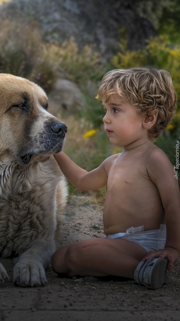 Edytor tapety: Owczarek środkowoazjatycki z dzieckiem