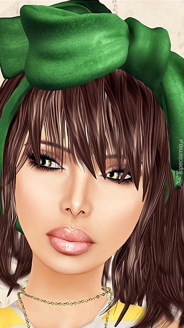 Edytor tapety: Kobieta z zieloną kokardą we włosach