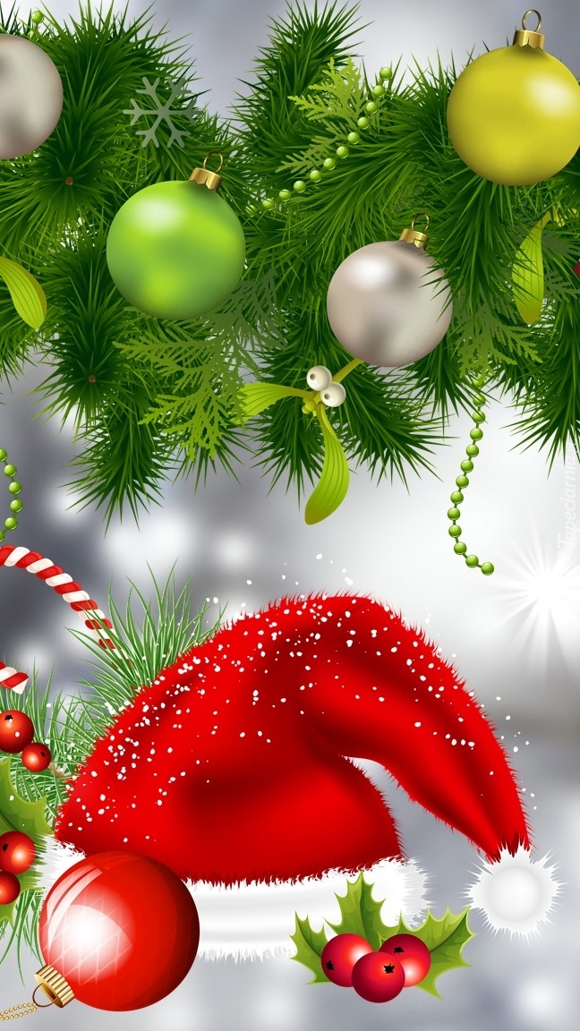 Edytor tapety: Czapka Mikołaja i świąteczne ozdoby