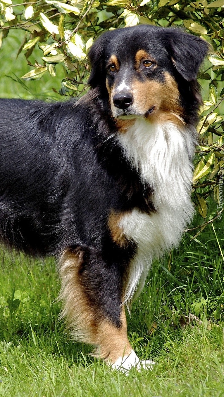 Edytor tapety: Pies stoi na trawie