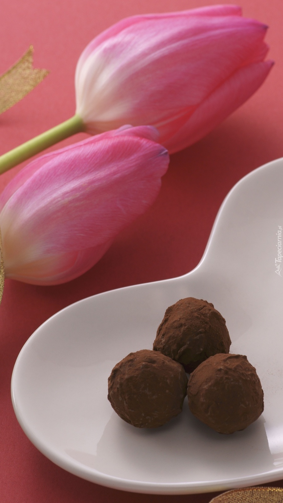 Edytor tapety: Trufle na talerzyku obok tulipanów