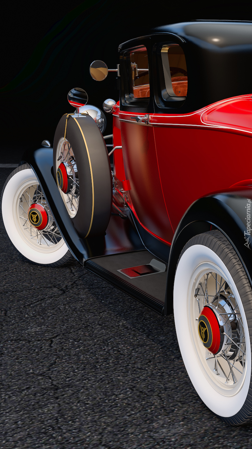 Edytor tapety: Czerwony zabytkowy Ford Coupe Deluxe bokiem
