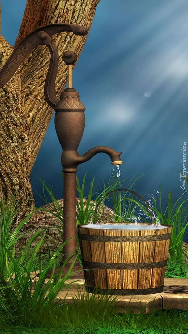 Edytor tapety: Wiaderko przy ogrodowej pompie