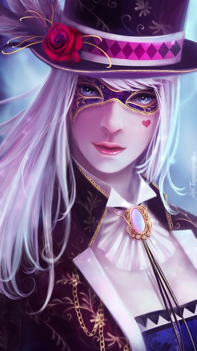 Edytor tapety: Tajemnicza kobieta w masce i kapeluszu