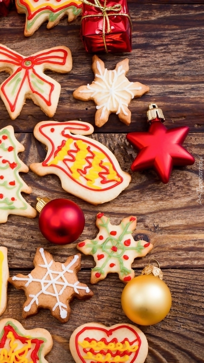 Edytor tapety: Słodkie ciasteczka z bombkami na deskach