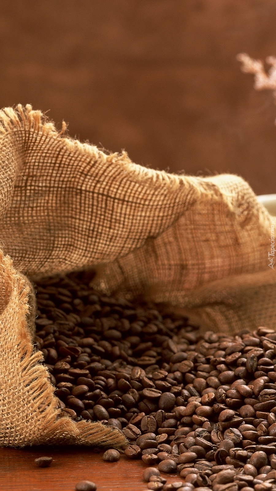 Edytor tapety: Wysypane z worka ziarna kawy