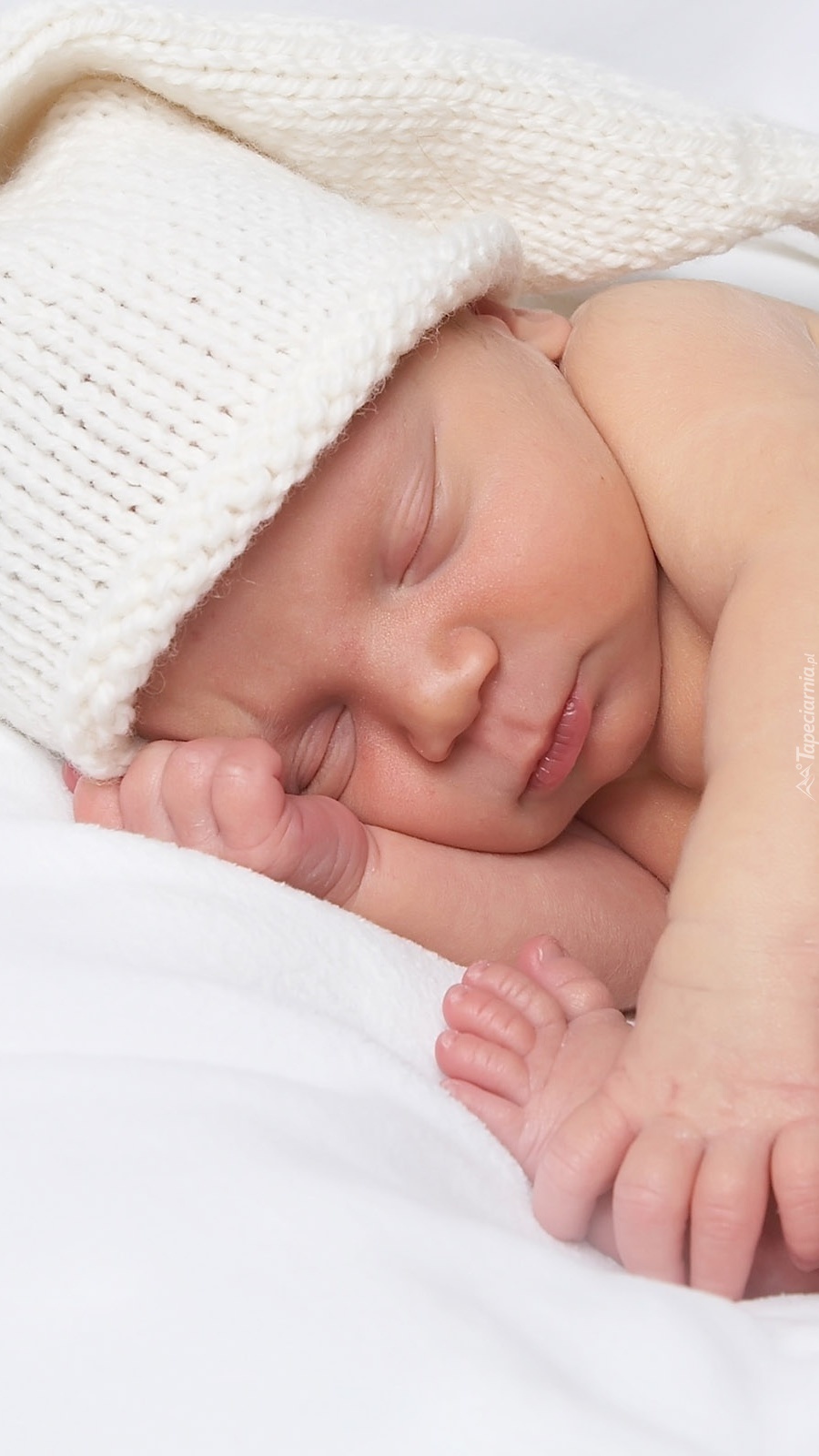 Edytor tapety: Śpiące dziecko w białej czapce
