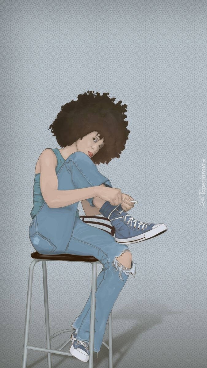 Edytor tapety: Kobieta zawiązująca trampek na krześle