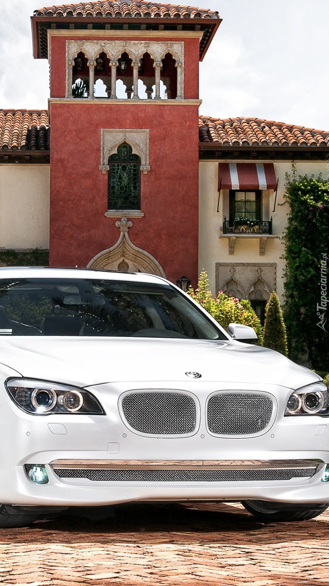 Edytor tapety: Białe BMW 7 przed pałacem