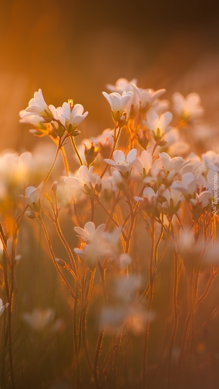 Edytor tapety: Białe łąkowe kwiaty na rozmytym tle