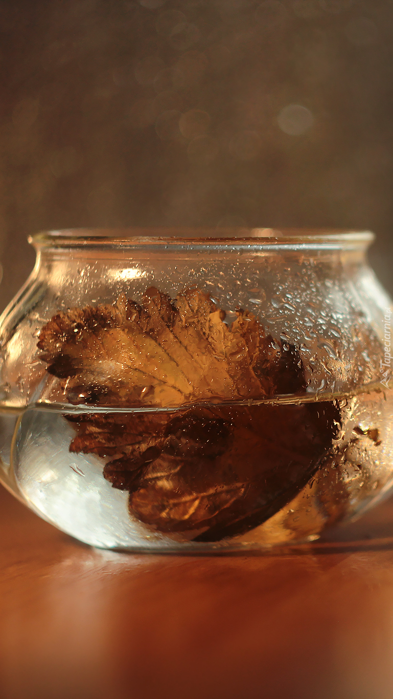 Edytor tapety: Uschnięty liść w szklanym naczyniu