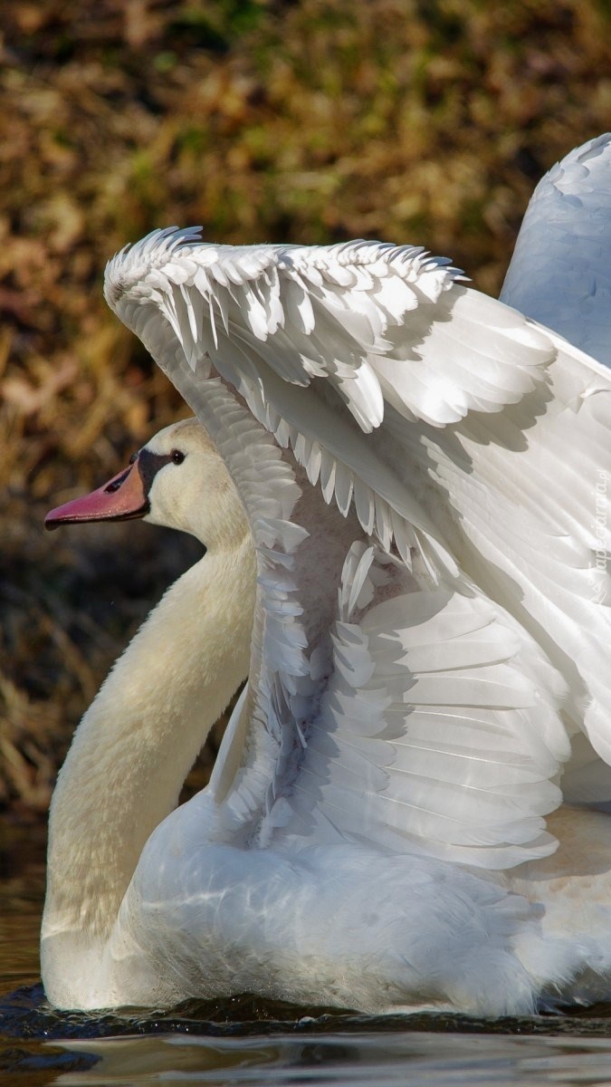 Edytor tapety: Łabędź z rozpostartymi skrzydłami
