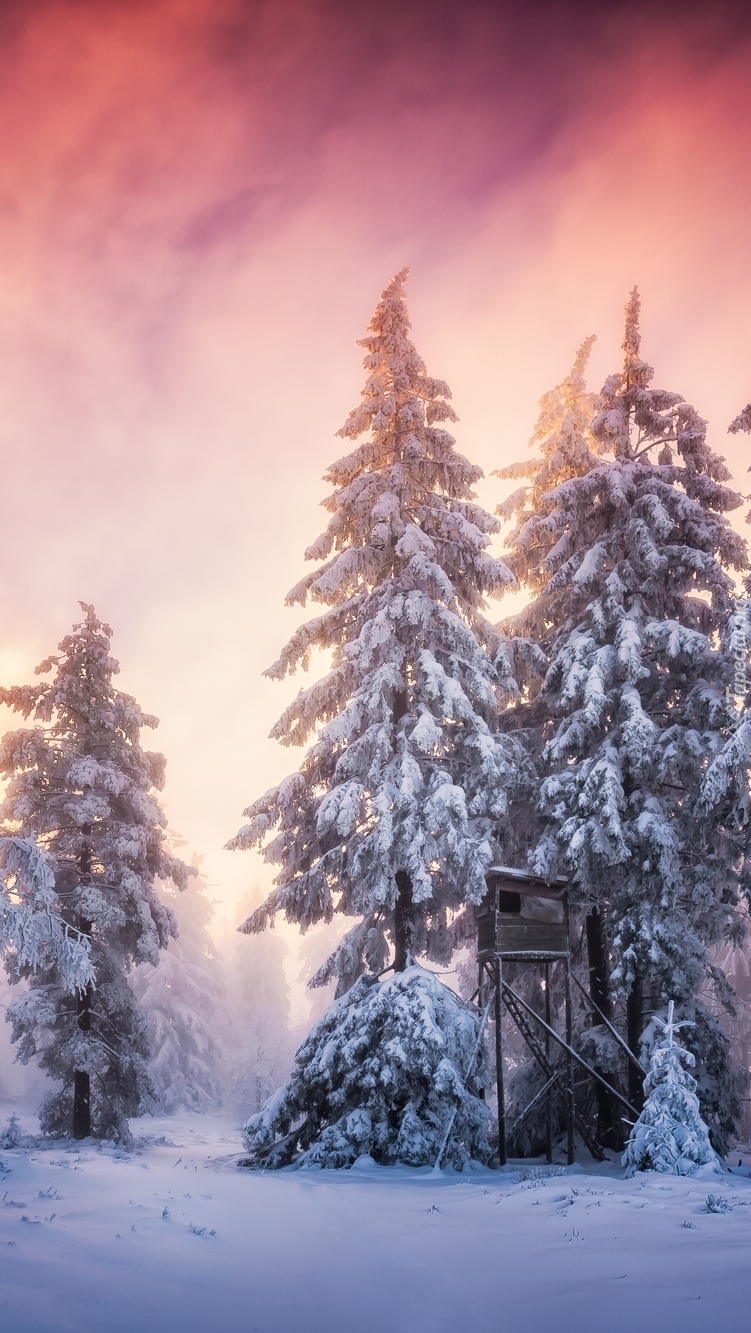 Edytor tapety: Leśna ambona w zimowej scenerii