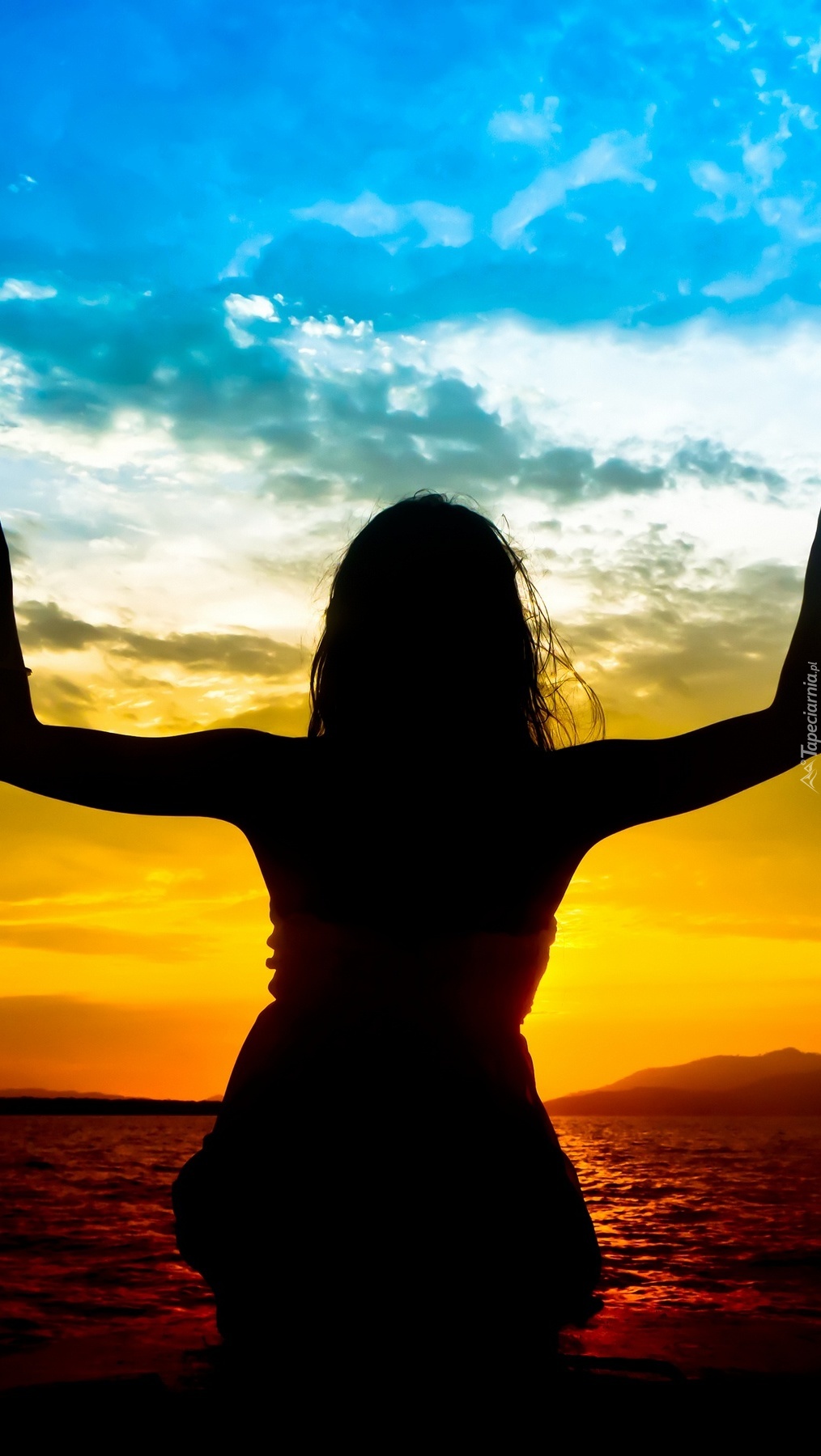 Edytor tapety: Kobieta w wodzie o zachodzie słońca