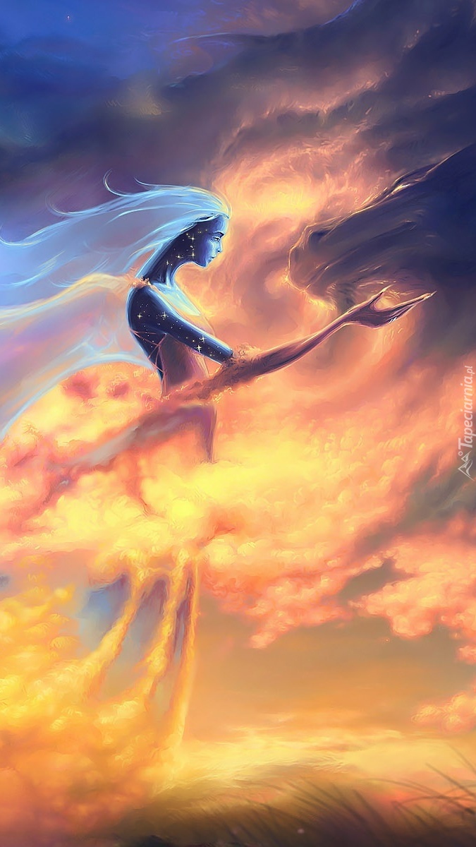 Edytor tapety: Kobieta i smok w grafice
