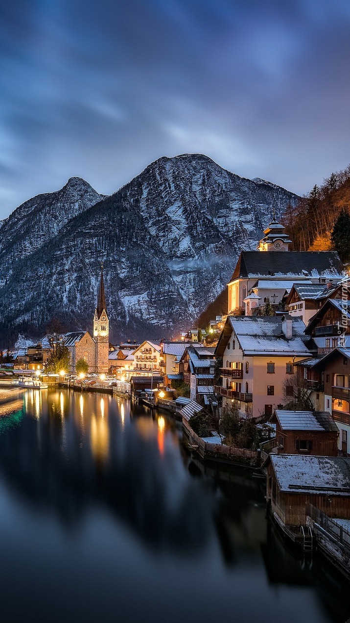 Edytor tapety: Miasteczko Hallsatt w nocnej scenerii