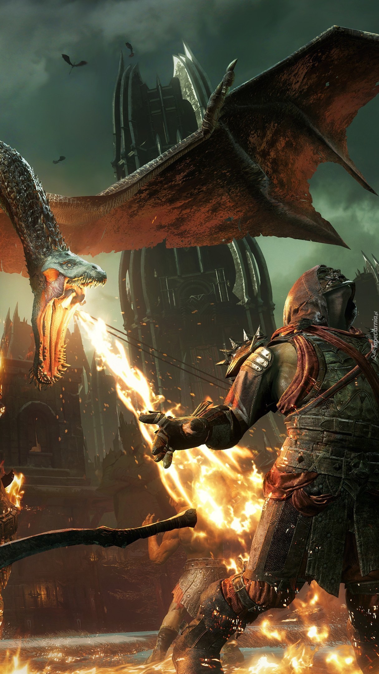 Edytor tapety: Walka ze smokiem ziejący ogniem