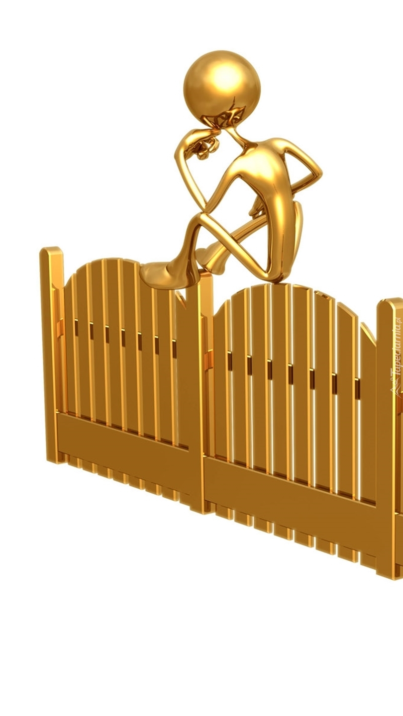 Edytor tapety: Złoty ludzik na płocie w 3D