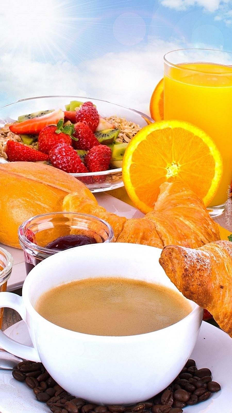 Edytor tapety: Kawa i rogaliki na śniadanie