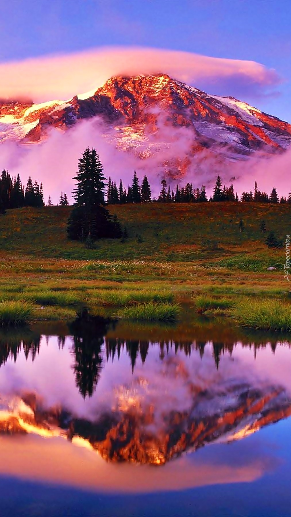 Edytor tapety: Górski krajobraz w zwierciadle jeziora