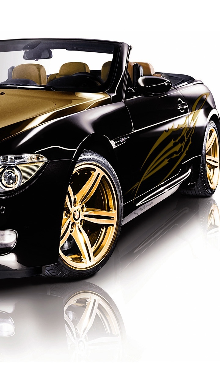Edytor tapety: Czarne BMW ze złotymi felgami