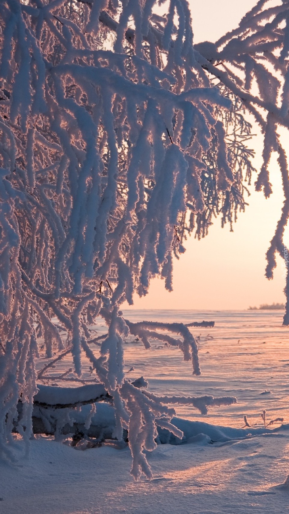 Edytor tapety: Oszronione krzewy nad zamarzniętym jeziorem