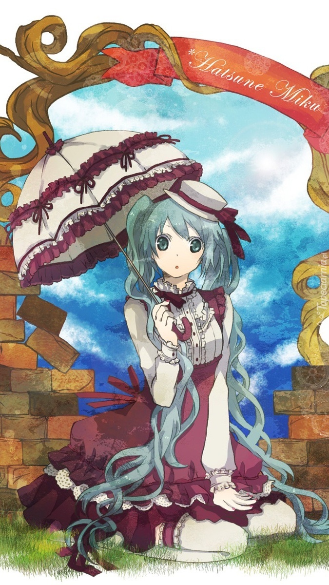 Edytor tapety: Hatsune Miku pod parasolem