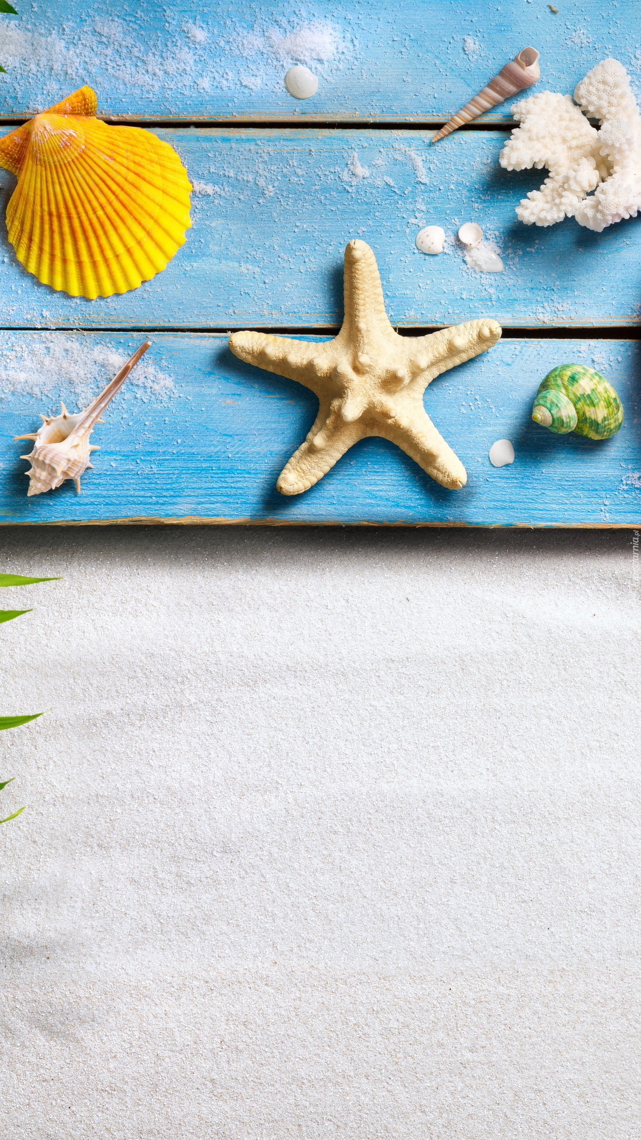 Edytor tapety: Muszelki na deskach