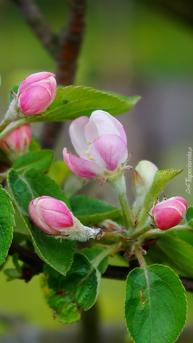 Edytor tapety: Rozkwitające pąki drzewa owocowego