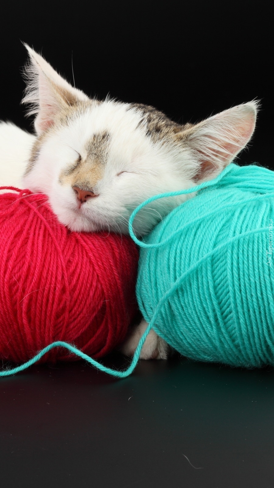 Edytor tapety: Kotek śpi na kłębkach włóczki