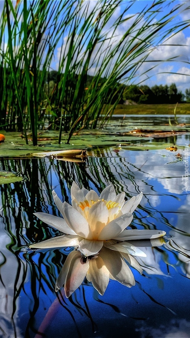 Edytor tapety: Biała lilia wodna na jeziorze