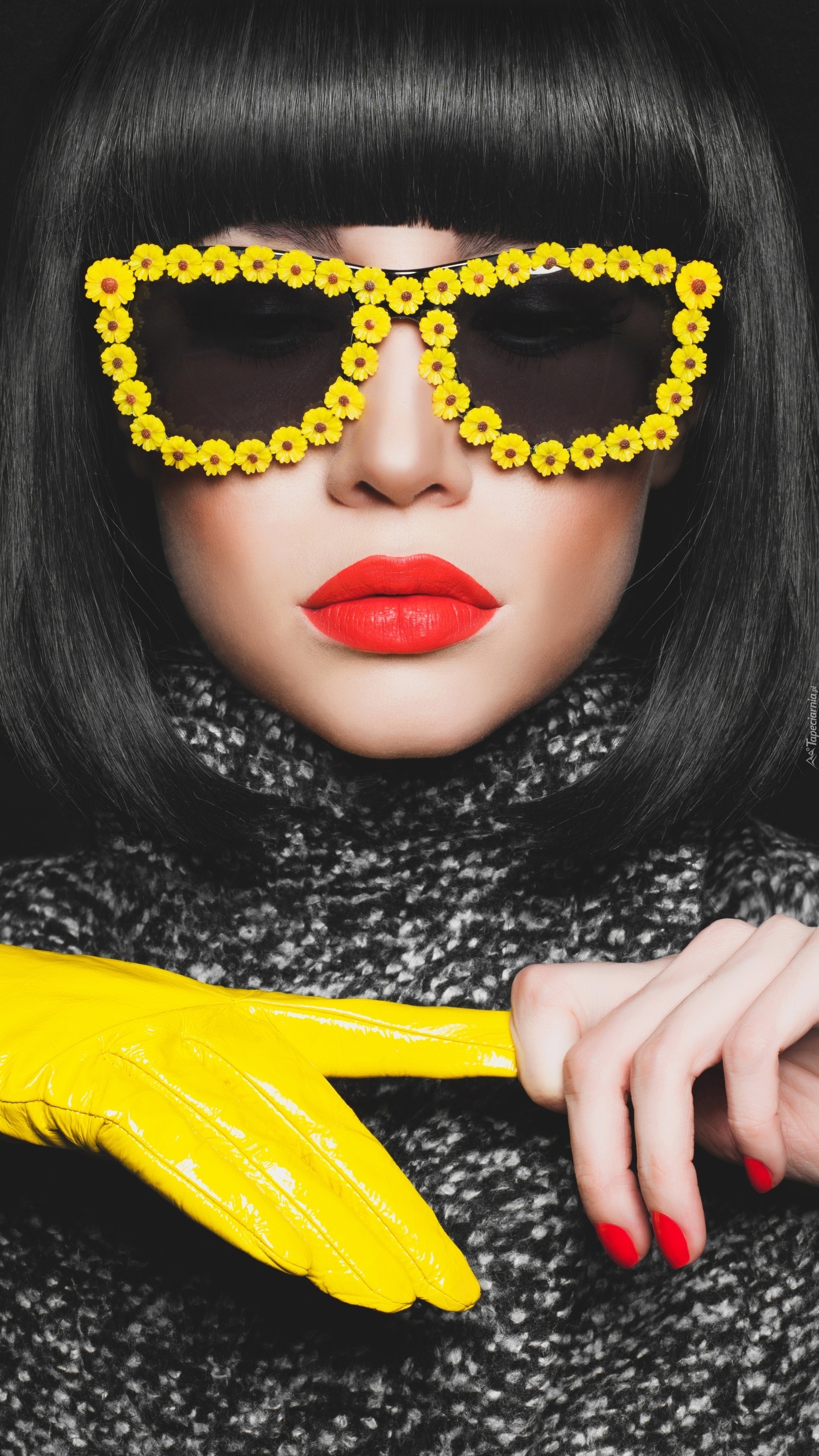 Edytor tapety: Kobieta w okularach z żółtymi oprawkami