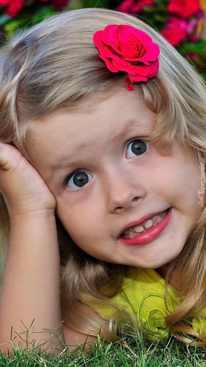 Edytor tapety: Dziewczynka z różą we włosach