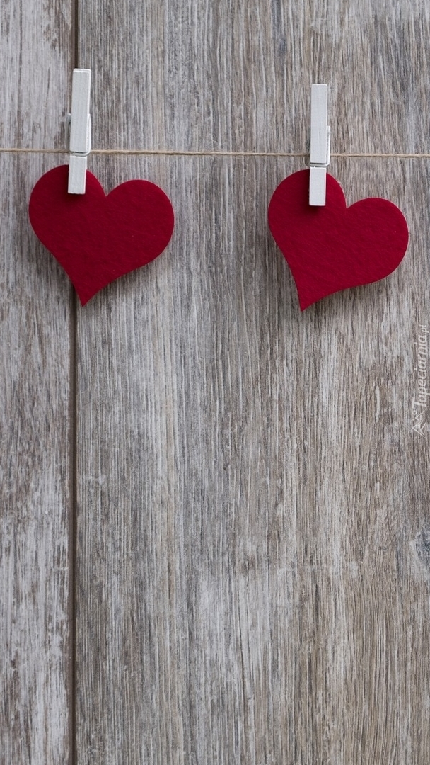 Edytor tapety: Czerwone serduszka przypięte klamerkami