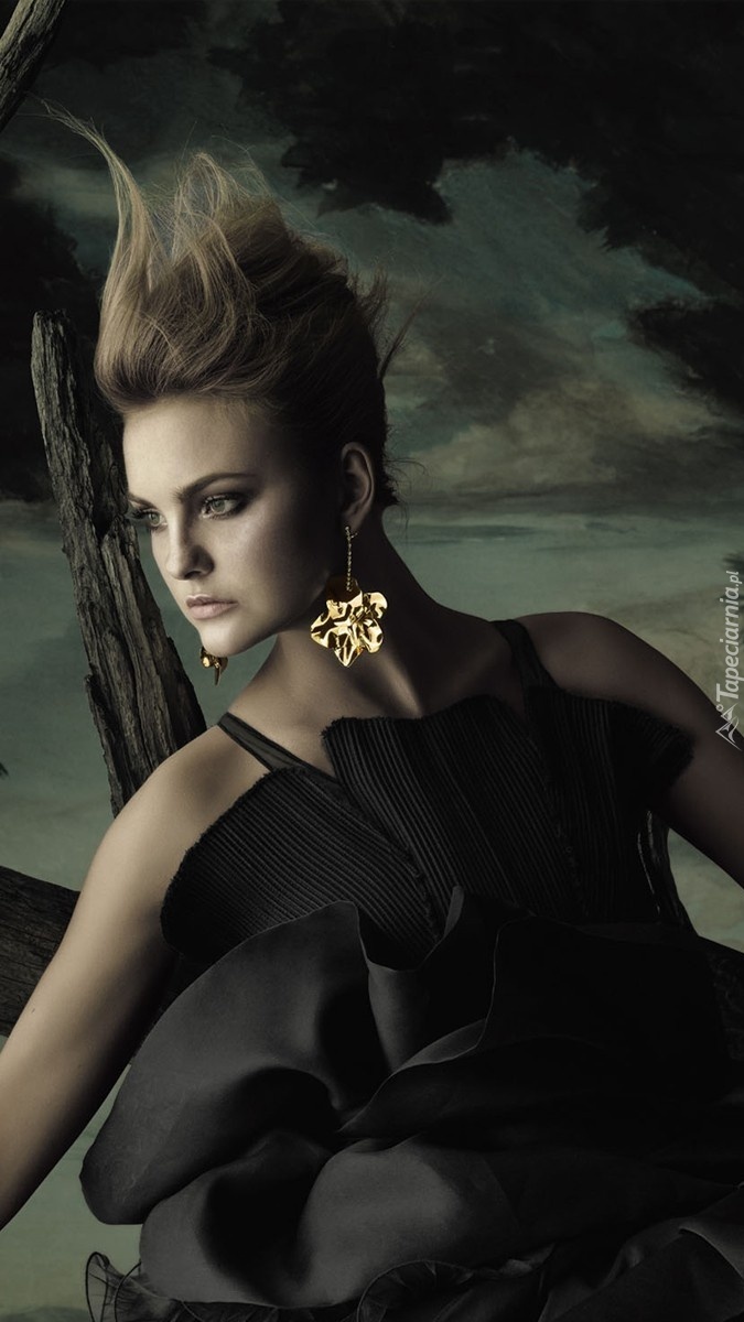 Edytor tapety: Kobieta w czarnej sukni i kolczykach