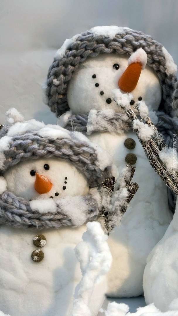 Edytor tapety: Dwa bałwanki w szarych czapeczkach