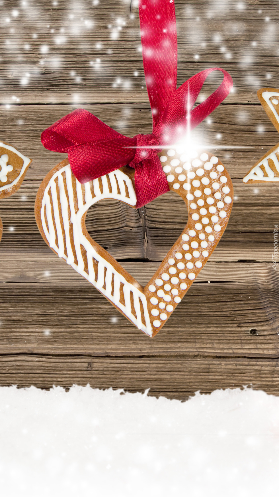 Edytor tapety: Piernikowe serduszko z czerwoną wstążką