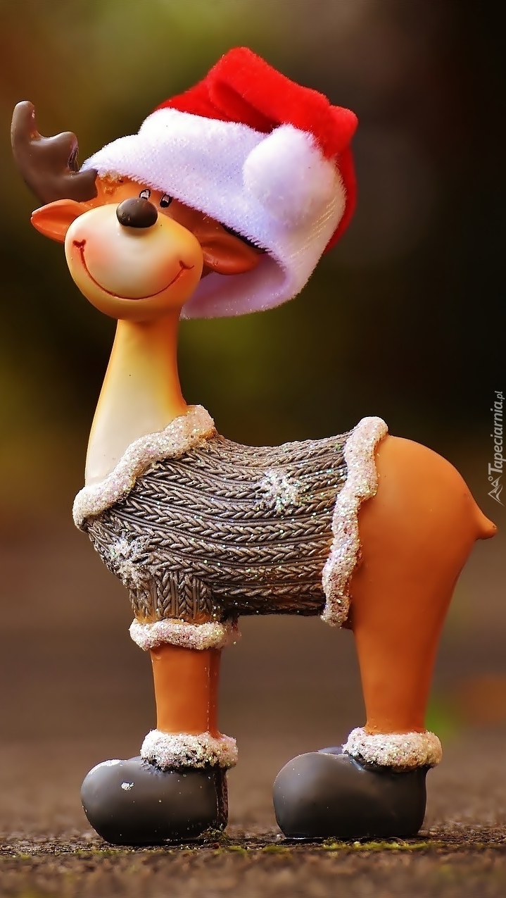 Edytor tapety: Śmieszny renifer w czapce Mikołaja