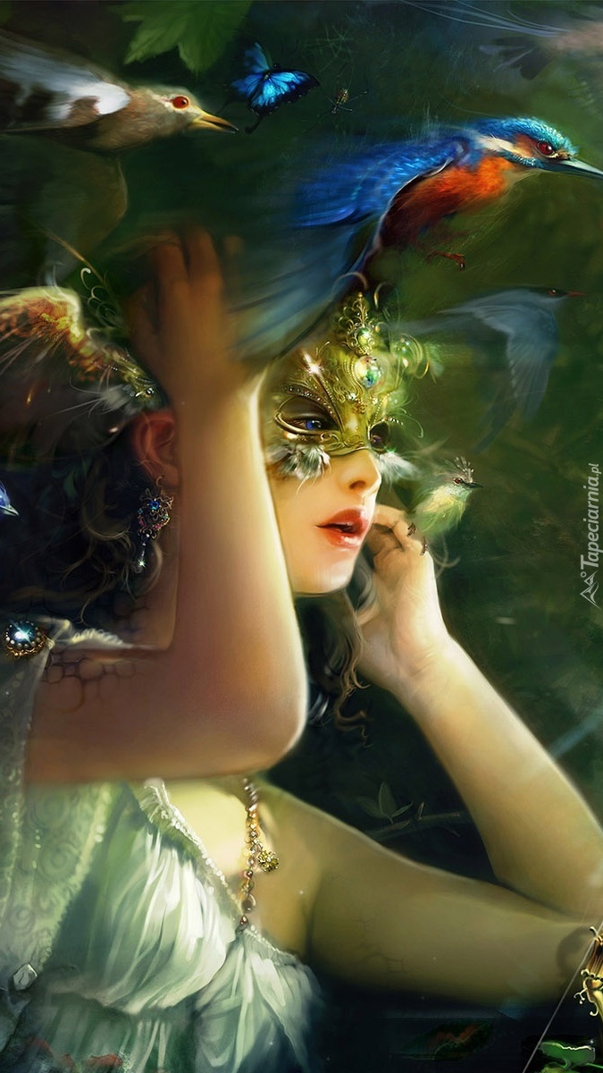 Edytor tapety: Kobieta w masce i ptaki
