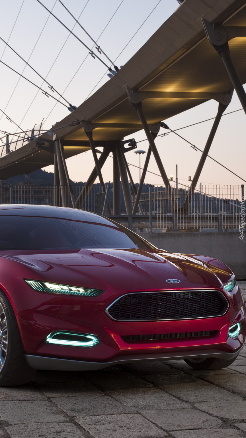 Edytor tapety: Przód bordowego Forda pod mostem