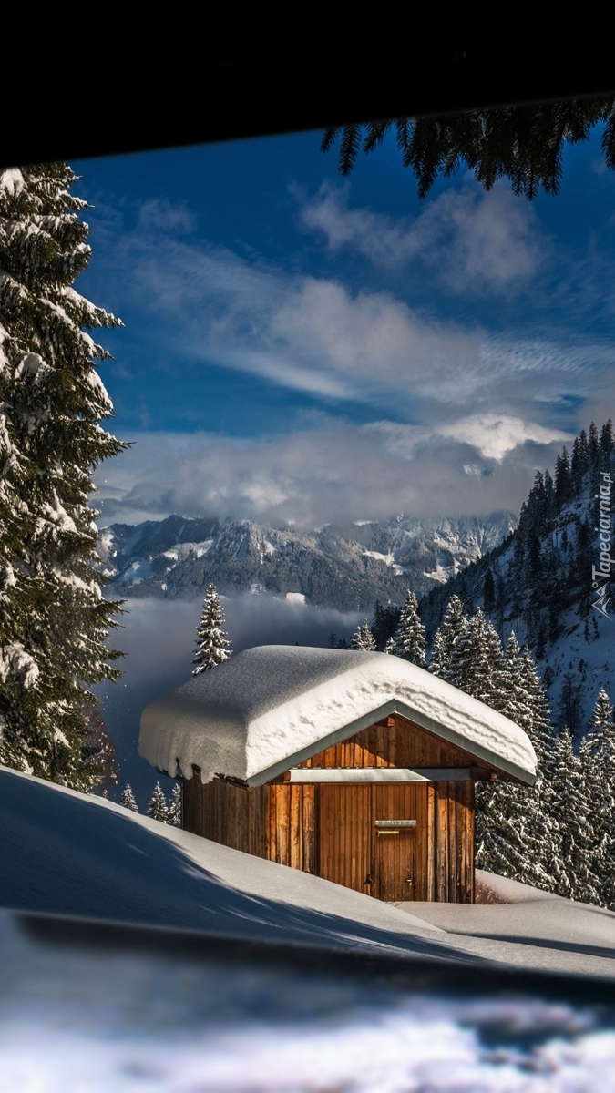 Edytor tapety: Domek w górach zimą