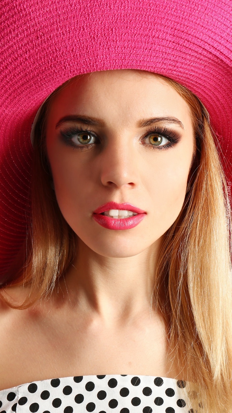 Edytor tapety: Blondynka w różowym kapeluszu